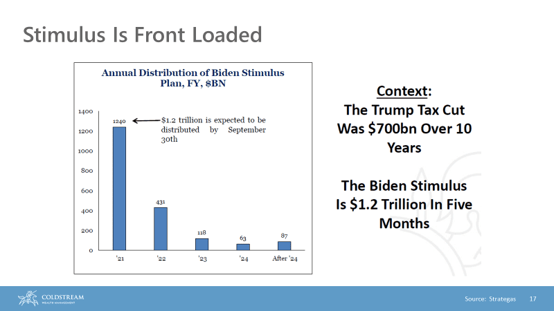 In addition, the recently passed stimulus package is front loaded, with the great majority of benefits being distributed by the end of the third quarter of this year.