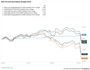 Coldstream will continue to place an emphasis on diversification in areas of core bonds, international equities, and alternatives, and focus on active management around valuations, quality, and tariff impacts in sectors like tech and materials.