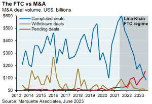 One trend that could benefit small cap stocks, as well as private equity, is a resurgence in merger & acquisition (M&A) activity, which has seen a dramatic decline during Lina Khan’s tenure as Commissioner of the U.S. Federal Trade Commission.